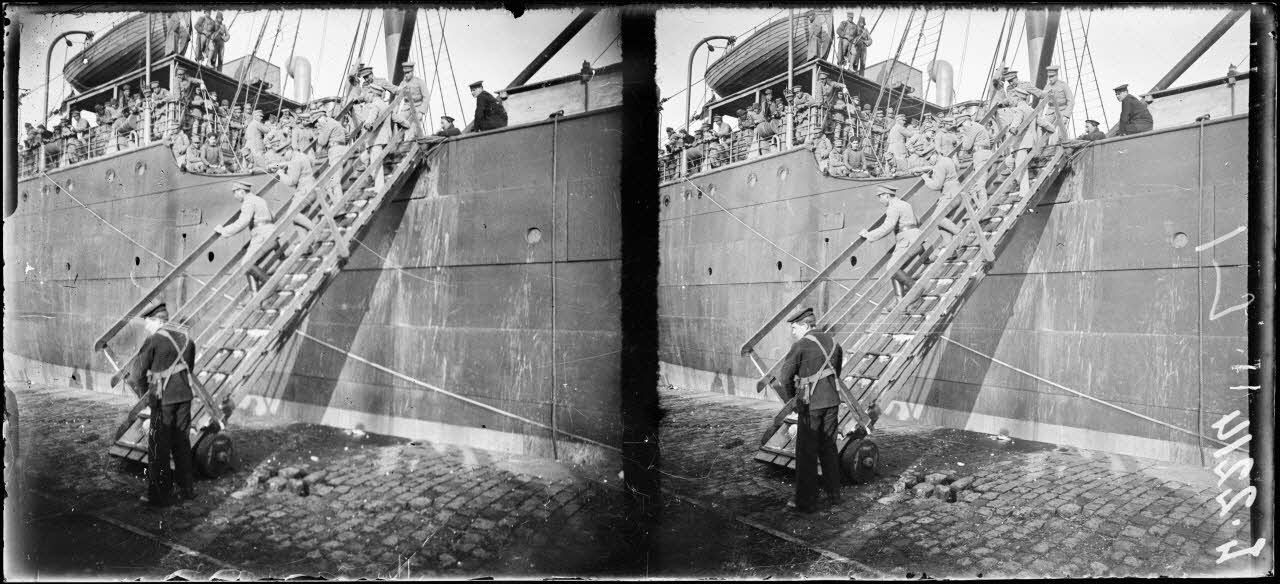 Brest. Arrivée de troupes portugaises par le City of Bénarès, à bord avant le débarquement.