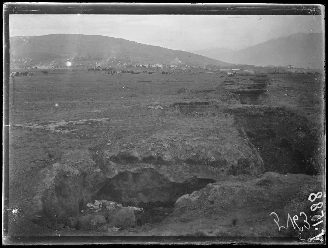 Brod. Vue des tranchées bulgares près Brod après le bombardement.