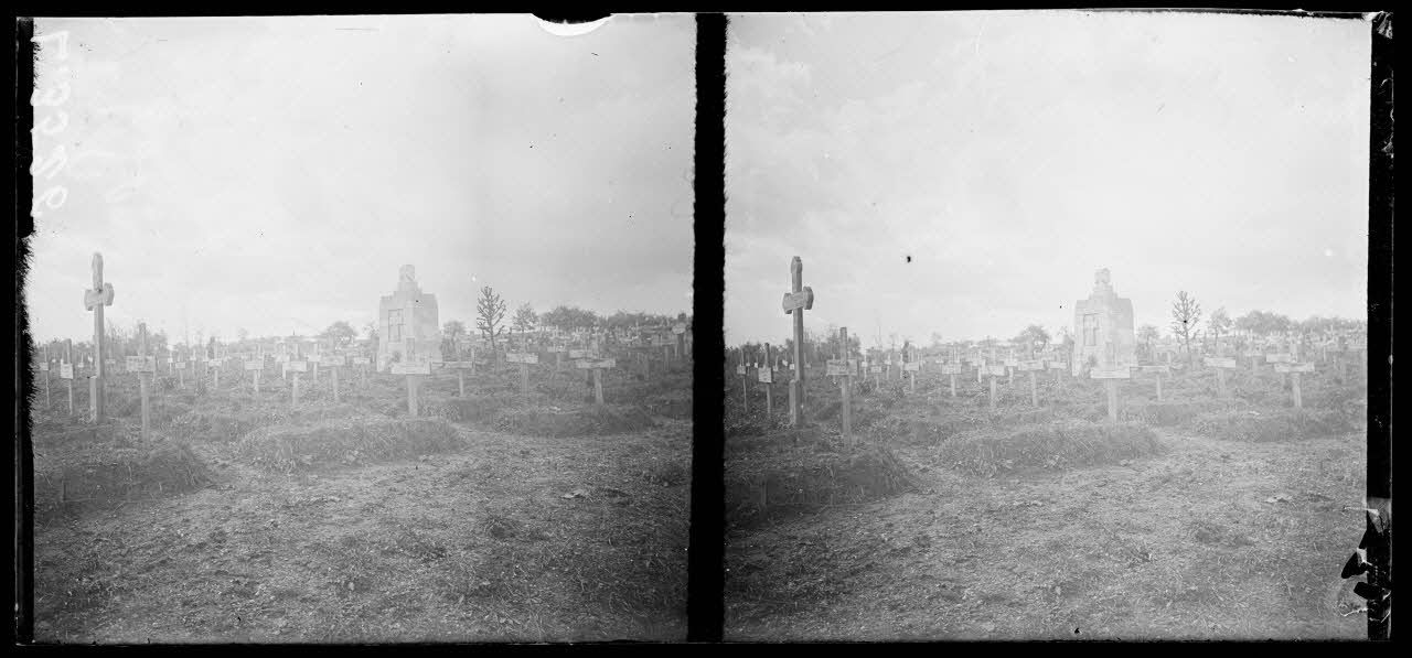 - à Ribécourt-Dreslincourt, des voitures de ravitaillement hippomobiles du 55e BCP (bataillon du chasseurs à pied) traversent le village en ruine (SPA 76 L 3521), les ruines de l'église (SPA 76 L 3522), des soldats français et des ambulances américaines (SPA 76 L 3523) ;