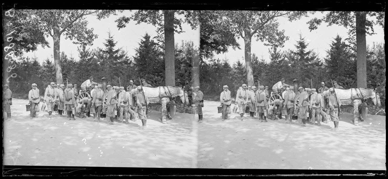 Butte de tir près de Reims. Distribution de la soupe aux corvées qui vont ensuite par les boyaux la porter aux hommes dans les tranchées. [légende d’origine]