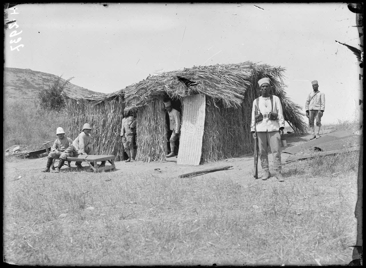 Sur la route de Daudli, près de Dzuma, les tirailleurs malgaches ont établi leur campement dans lequel ils sont de corvée à tour de rôle. Des soldats malgaches (Marakly) exécutent des danses guerrières au son d'une musique traditionnelle. Plus loin, le dortoir du la 2e compagnie du 4e RMM.
