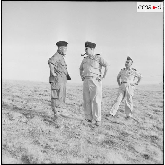 Le général Challe s'entretient avec le lieutenant Auger, chargé des relations avec la presse.