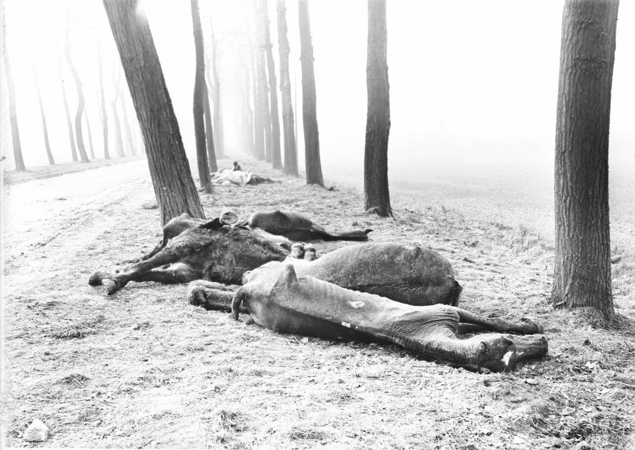 D66-12-80 : Chevaux atteints à la tête par le gaz hypérite. Champagne, 1918.