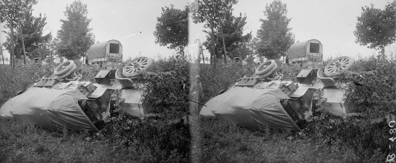 Camion chargé d’obus renversé par un accident sur le bord de la route. [légende d’origine]
