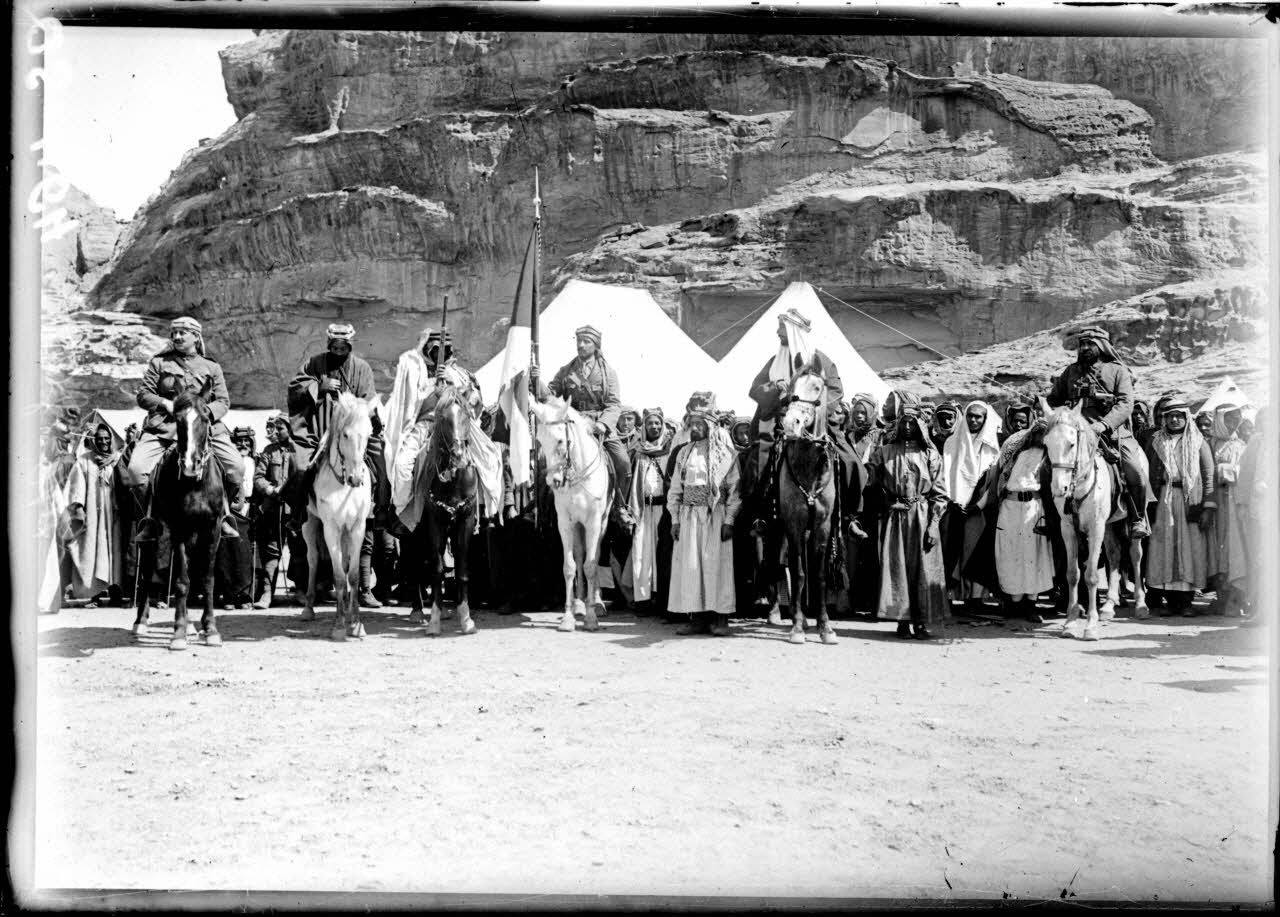 Note : en 1916, les tribus du centre de la péninsule Arabique, sous la conduite de l'émir Hussein, chérif de La Mecque et roi du Hedjaz, se révoltent contre les Turcs avec l’ambition de créer un état arabe unifié ; elles sont soutenues par les gouvernements britanniques et français.