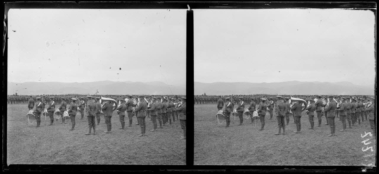 Camp de Lembet. La musique anglaise pendant la revue.