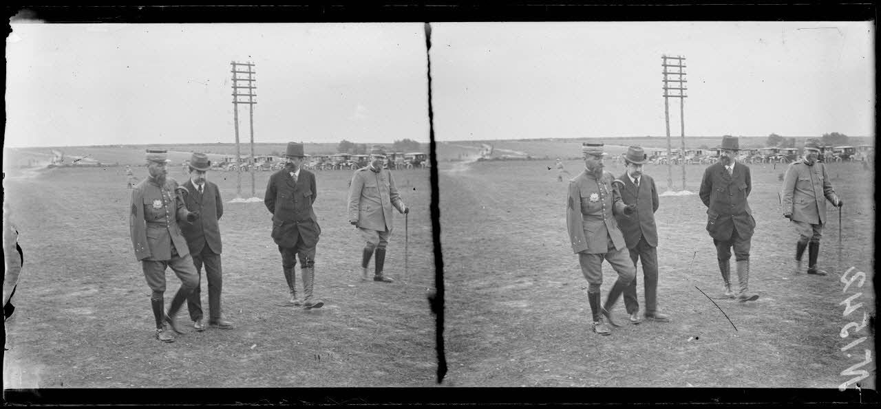 D’après le compte rendu de tournage du film fait au même moment, le général Pétain est là également, mais il n’a pas pu être identifié sur les clichés, où on note la présente d’un autre général.