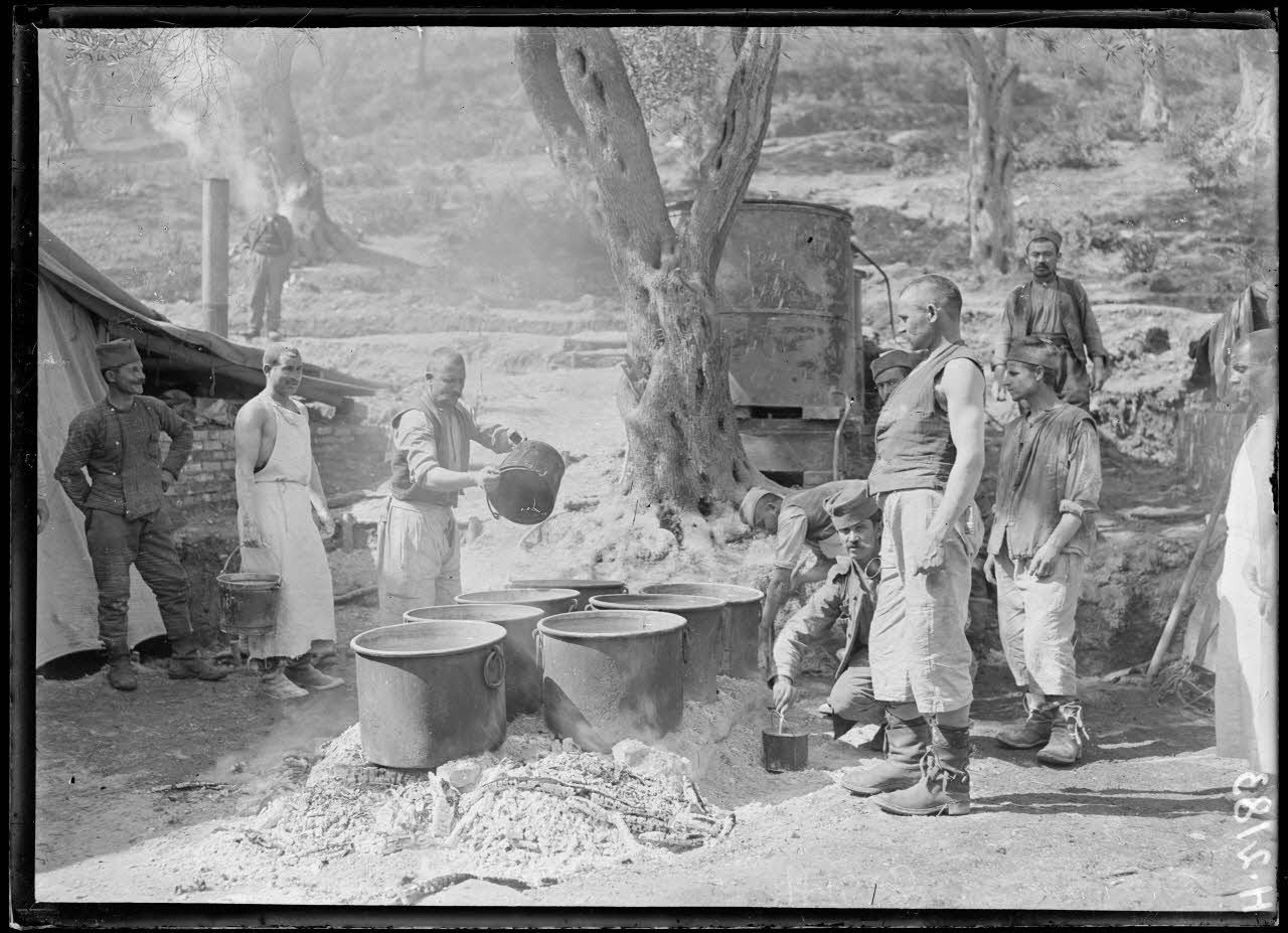 Camp de Moraitika. Popote des sous-officiers français chargés du ravitaillement de l'armée serbe.