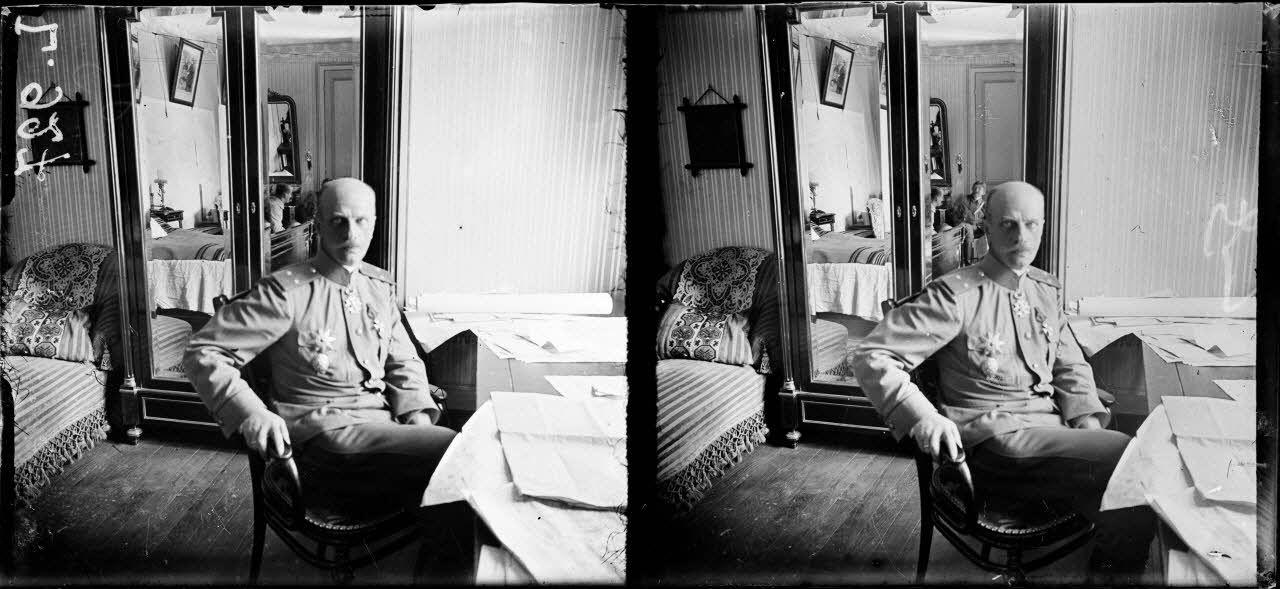 - le général Lokhvitsky pose dans son bureau au camp de Mourmelon ;