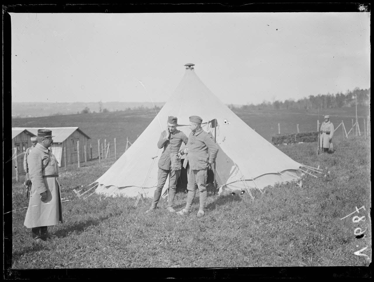 Camp de prisonniers allemands faits aux Bois-des-Buttes, près de la Ville-aux-Bois. Camp sanitaire d'observation d'Irval près de Jonchery. Installation des tentes du camp.