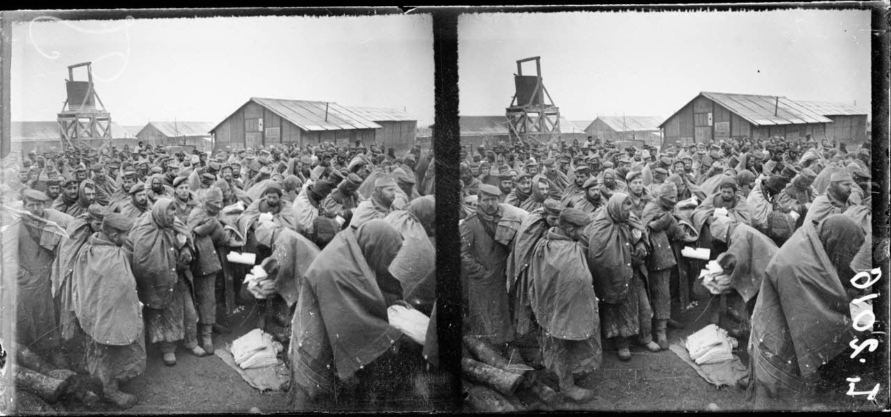 Camp de Souilly, Meuse. Distribution de la soupe aux prisonniers.