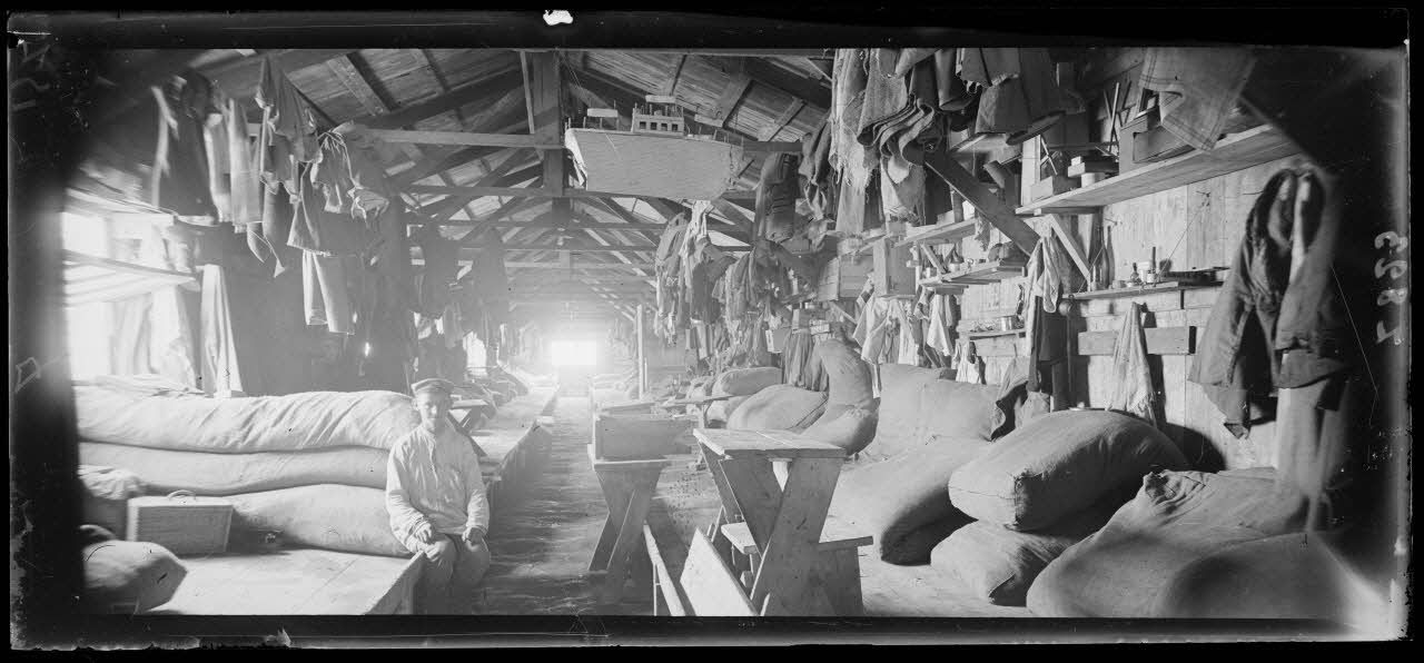 Camp de prisonniers. Stade de Lyon. Intérieur d'un dortoir. [légende d'origine]