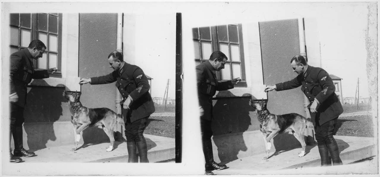 D169-6-97. Sous-lieutenant Le Barbu, camarade observateur à l'escadrille [MF 44] avec son chien Kaki.