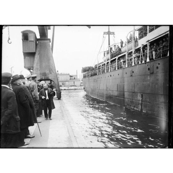 - l'arrivée du "Latouche-Treville" dans le port de Marseille, en présence du général Lokhvitsky (commandant de la 1re brigade) et de ses officiers d'Etat-Major ;