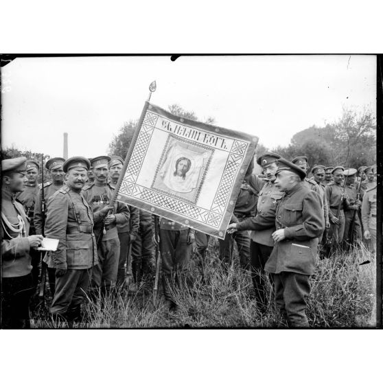 - au camp militaire Mirabeau, les troupes russes pendant la cérémonie religieuse (bénédiction d'un pope).