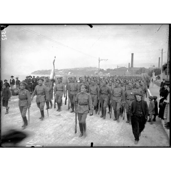 Marseille, les troupes russes partant pour la revue.
