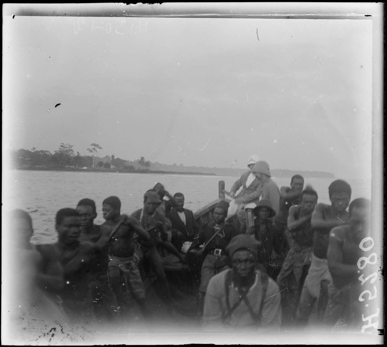 Sur le Campo. La chaloupe du poste remontant la rivière Campo.