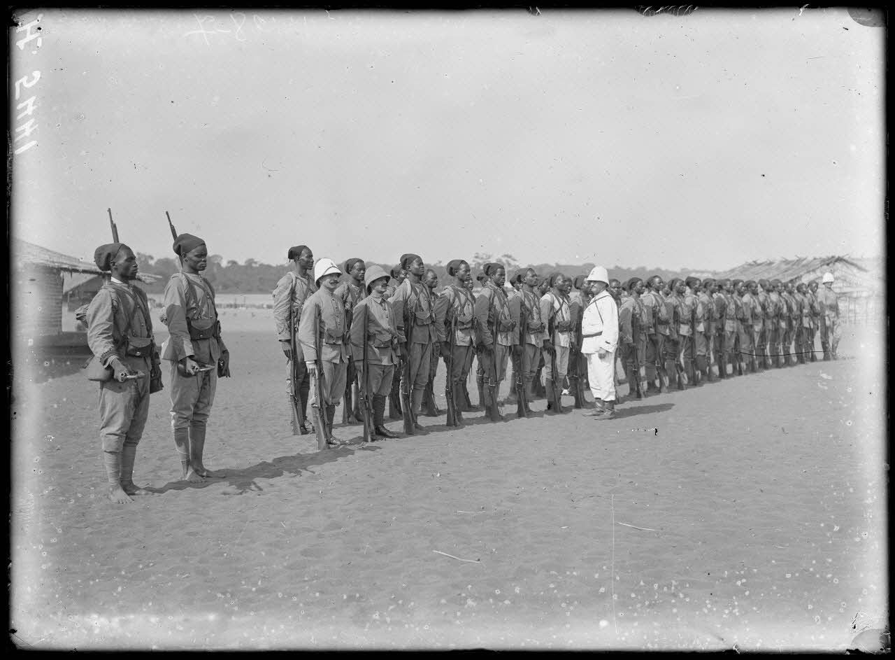 Campo. Revue de tirailleurs dans la cour du poste. [légende d'origine]