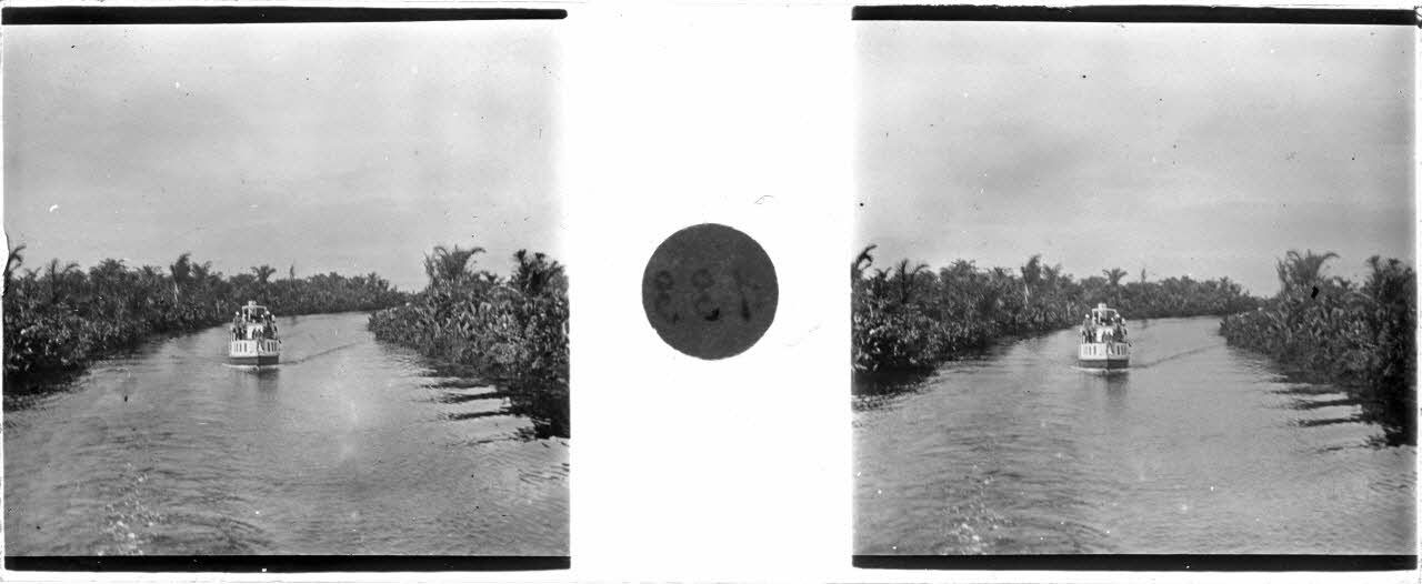 D68-10. Avant la colonisation, les villes de Madagascar n'étaient reliées que par des sentiers. Un énorme travail est donc entrepris dès 1895 par l'administration coloniale pour développer les voies de circulation sur l'île. Il s'agit tout d'abord de joindre Tamatave et Tananarive par route et par voie ferrée. En 1907, quand le lieutenant Denis débarque à Tamatave, le chemin de fer relie Ambila à Manjakandriana. Les travaux ferroviaires entre Manjakandriana et Tananarive sont en cours d'achèvement et il reste encore à réaliser le tronçon entre Ambila et Tamatave. Entre Tamatave et Ambila, il existait une suite de lagunes séparées par des seuils ou pangalanes. Le percement de ces seuils, entrepris dès 1897 par la compagnie des Messageries françaises de Madagascar, aboutit à la création du canal des Pangalanes en 1901. Le lieutenant Denis traverse ce canal à bord du bateau "Charles Bricka" et rejoint ainsi le départ de la voie ferrée à Ambila.