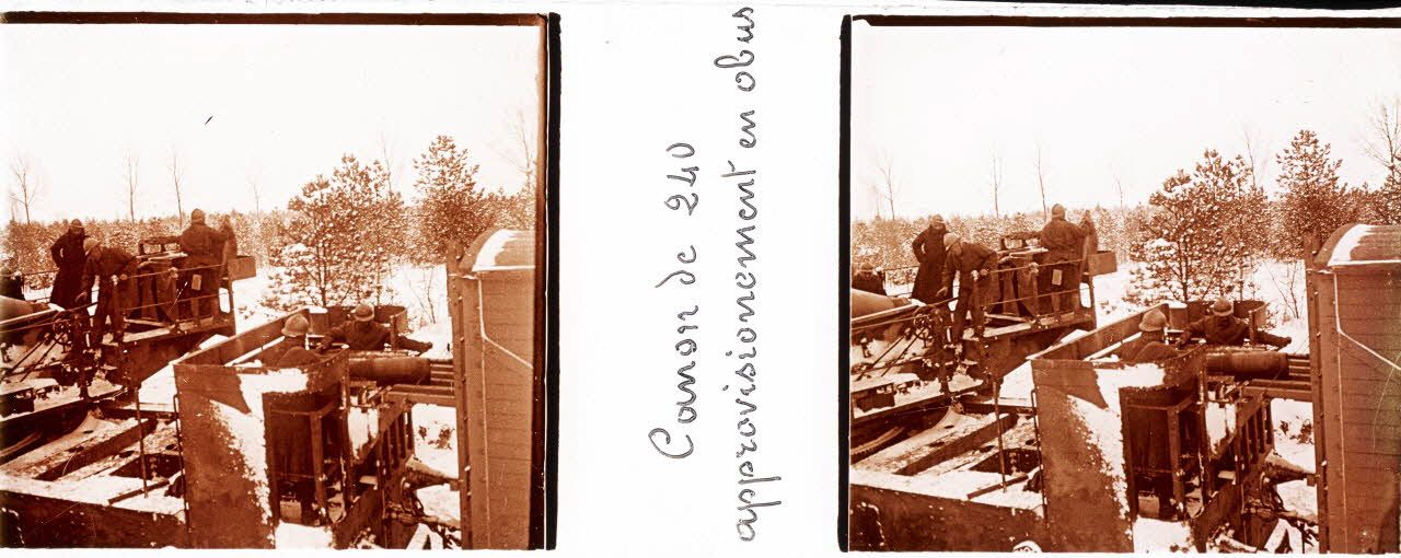 Canon de 240. Approvisionnement en obus. [légende d'origine]