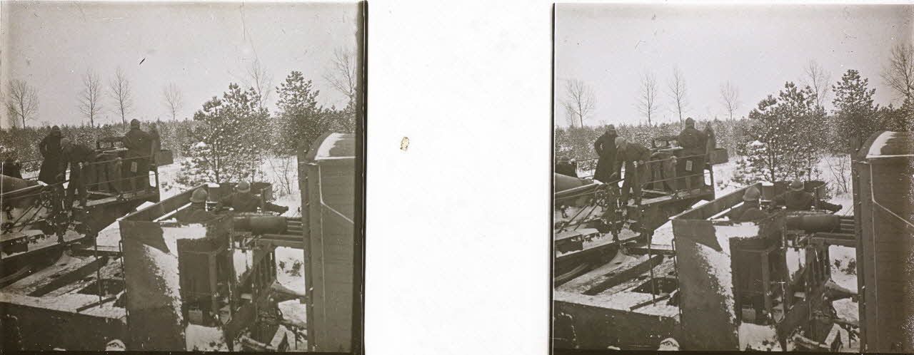 Ce reportage rassemble des photographies de différents canons utilisés pendant la Première Guerre mondiale, de leurs munitions, et de soldats les approvisionnant.