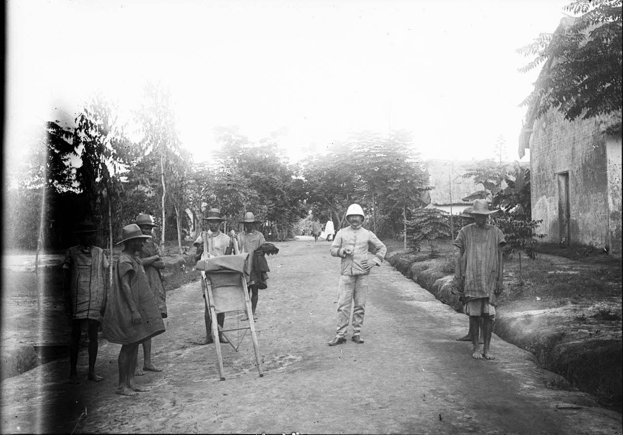Edgard Imbert (1873-1915), sous-lieutenant de l'infanterie coloniale et photographe est en poste à Madagascar du 10 février 1900 au 23 avril 1902. Arrivé à Tananarive, il photographie l'architecture de la ville, la population, la vie quotidienne et notamment le marché.