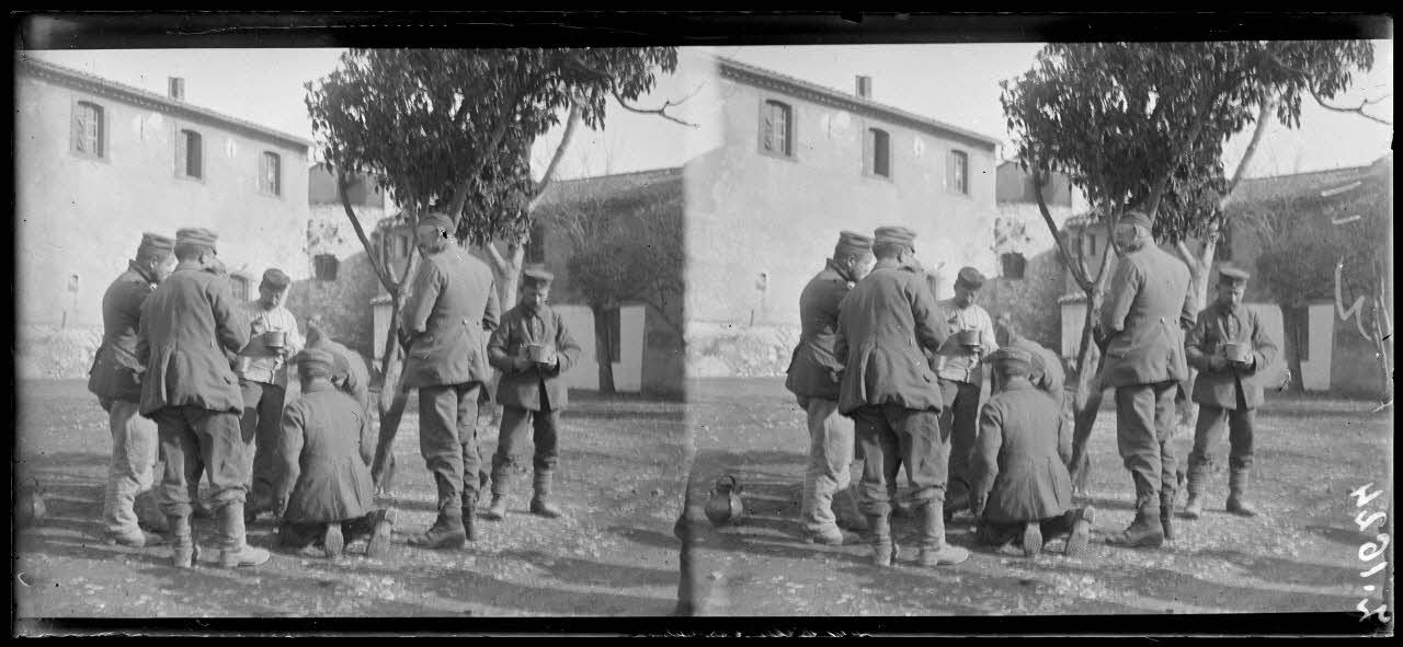 Carpiagne (Bouches-du-Rhône). Camp de prisonniers. La soupe. [légende d’origine]