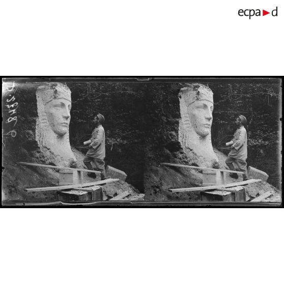 Le Chaufour, carrière près du château de Bellinglise, Oise. Le sphynx et le sculpteur Le Clabart (d'Amiens).
