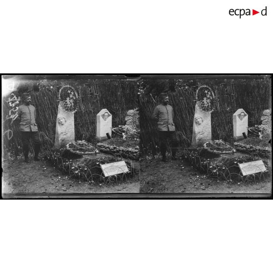 Le Chafour (Oise). Cimetière , tombe avec sculpture.