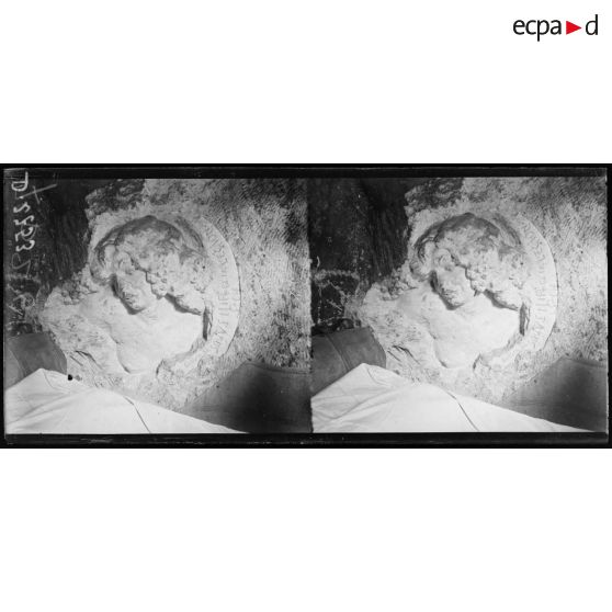 Carrière du Chauffour, Oise, bas-relief sculpté par un soldat à l'intérieur de la grotte. [légende d'origine]