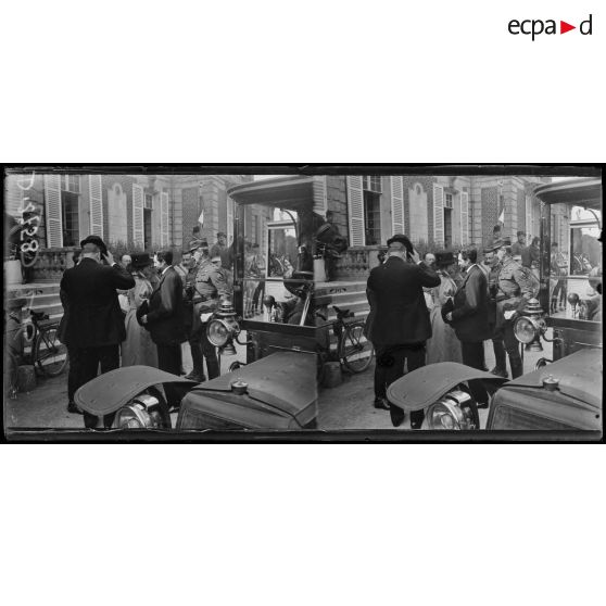 Ricquebourg (Oise). Tournée du théatre aux armée . Arrivée des clairons des zouaves au chateau.