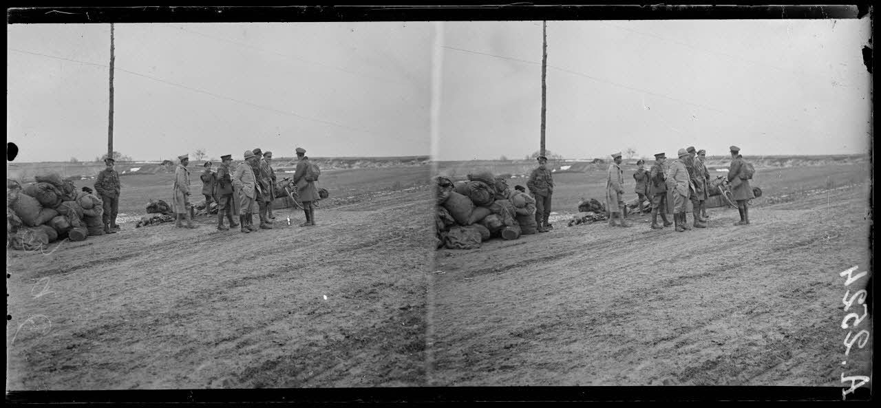 Séraucourt (Aisne). Troupes anglaises de relève prêtes à partir aux tranchées.