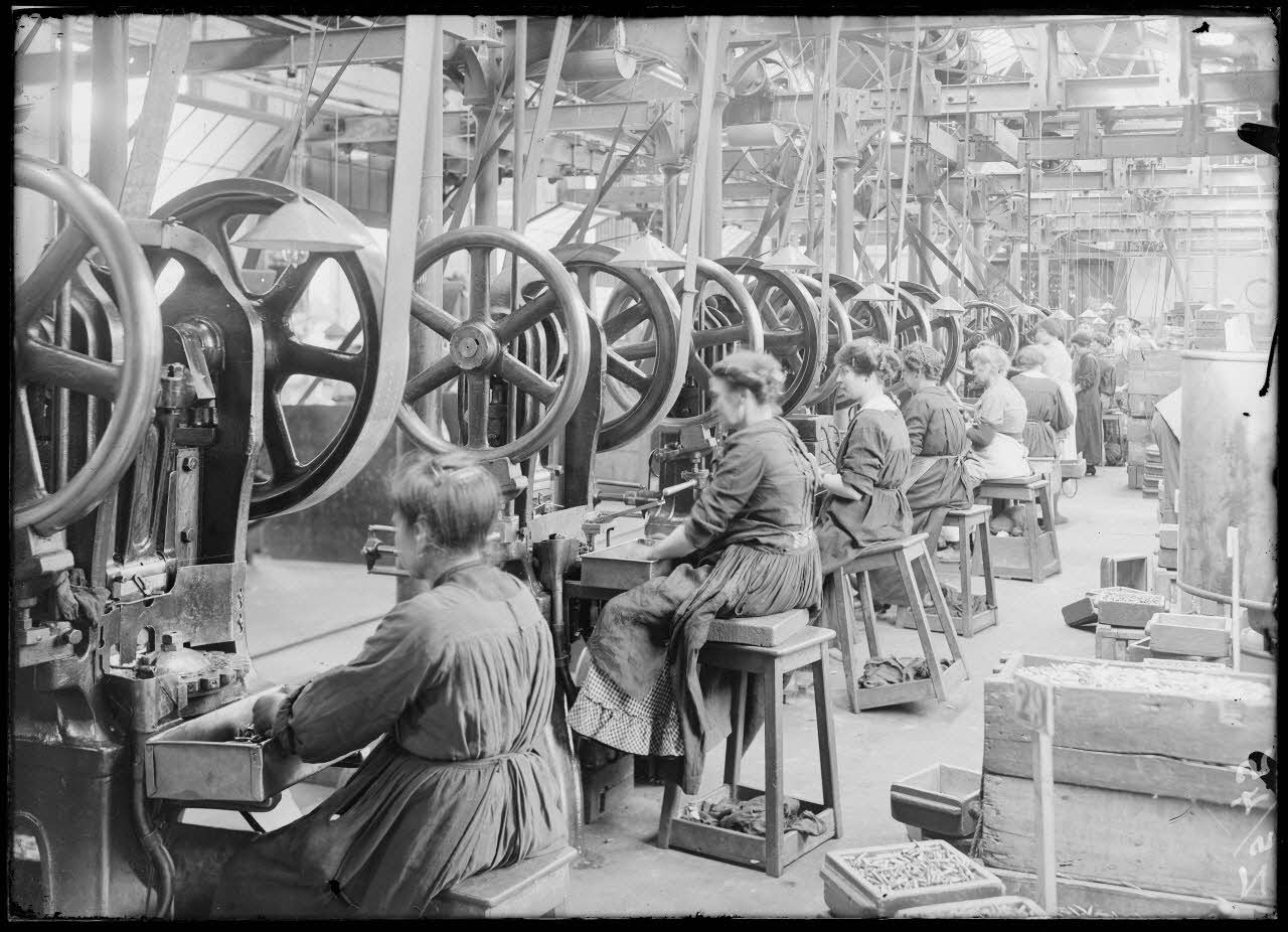 Société Eclairages électriques de Suresnes. Atelier des gaines. Contrôle des machines à tarauder.