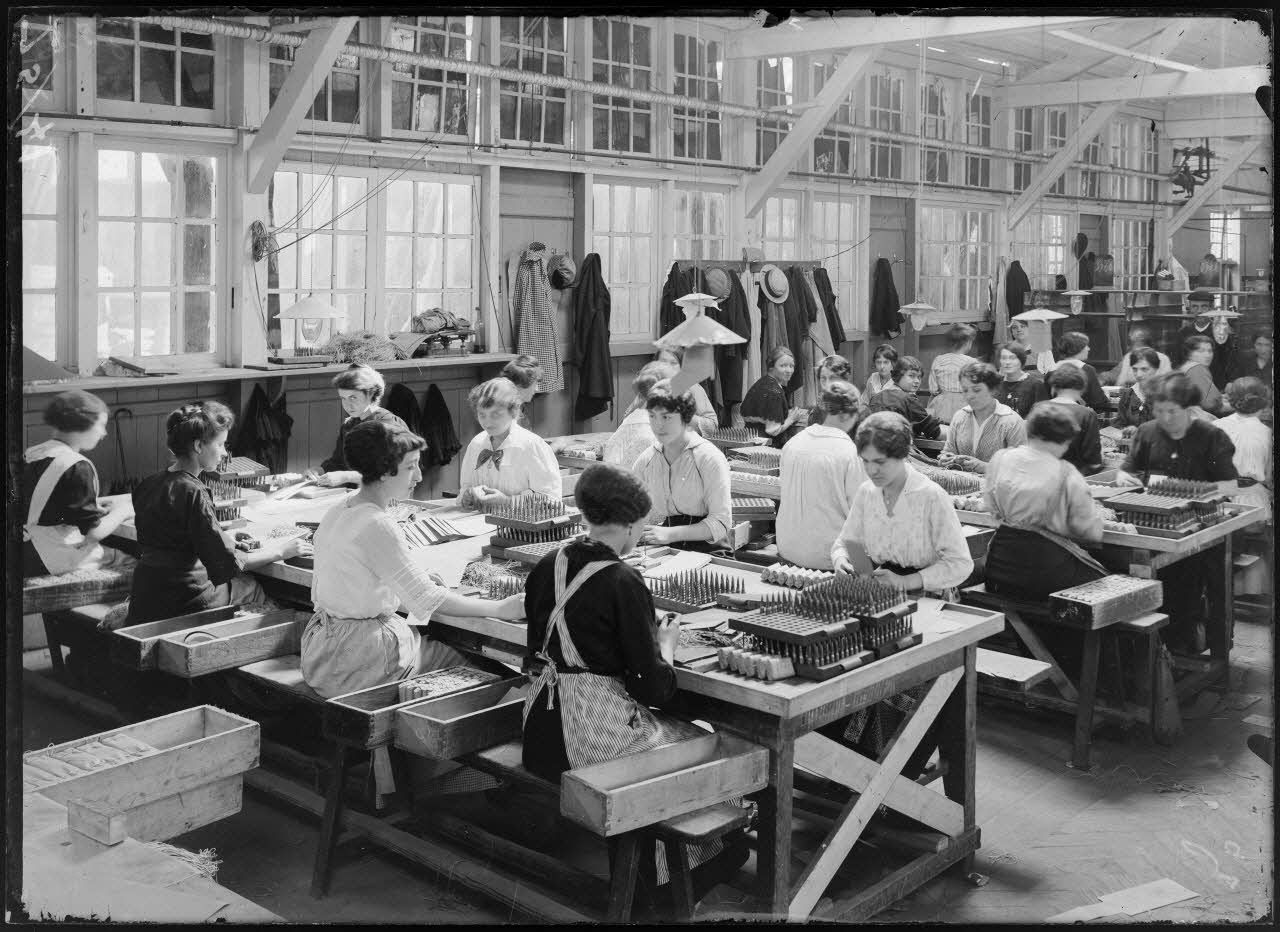 Société Eclairages électriques de Suresnes. Atelier des gaines. Contrôle des pièces finies.