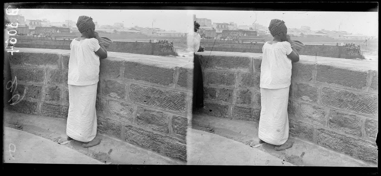 Casablanca, sénégalaise suivant des yeux une barcasse qui emmène son mari. [légende d’origine]