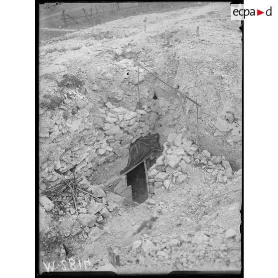 Nord d'Herbécourt, vue prise au boyau de la Choucroute. Entrée d'un abri.
