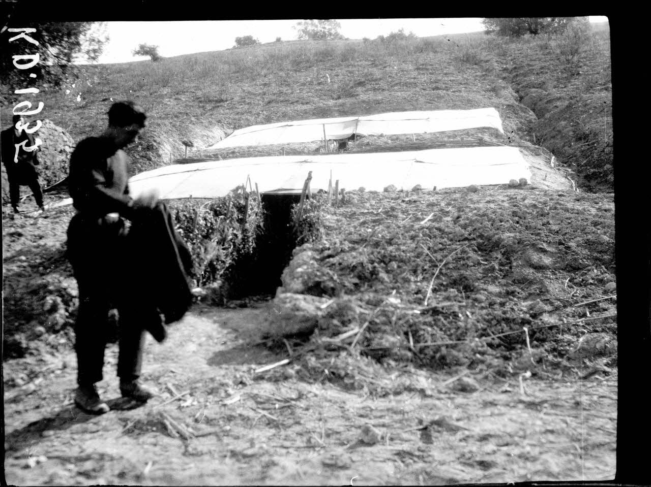 Cassandra. Presqu'île de Chalcidique. Les guitounes du poste d'hydavions enterrées dans la montagne. [légende d'origine]