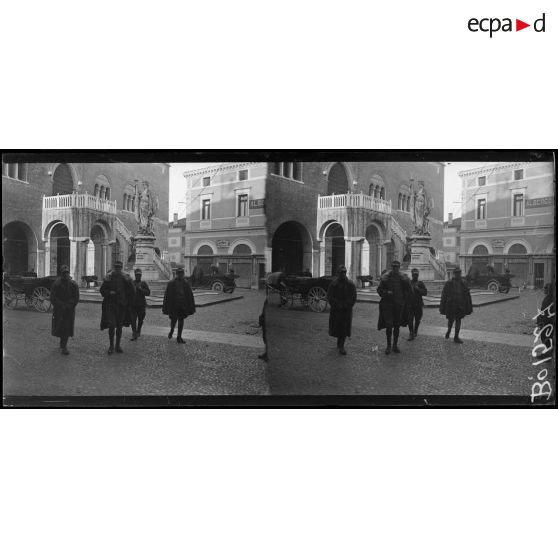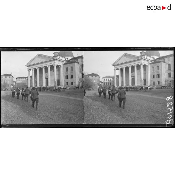 Trévise. Place du Dôme. Une corvée de soldats italiens.