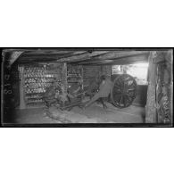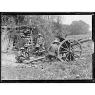 A Senoncourt-les-Maujouy, des artilleurs américains effectuent un exercice d'utilisation du masque à…