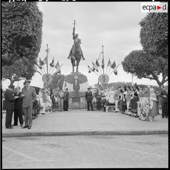 Le général Jacques Massu, commandant la 10e DP (10e division parachutiste) et commandant le corps d'armée d'Alger, a déposé une gerbe de fleurs au monument de la sainte au nom de Paul Delouvrier, le délégué général du gouvernement en Algérie. Un détachement des trois armes et la musique du 73e RIMA (73e régiment d'infanterie de marine) rendaient les honneurs. L'association fraternelle des alsaciens-lorrains en costumes folkloriques a également déposé une gerbe de fleurs devant la statue de sa patronne. Un office religieux à la cathédrale d'Alger terminait cette matinée consacrée au souvenir de la sainte Jeanne d'Arc.