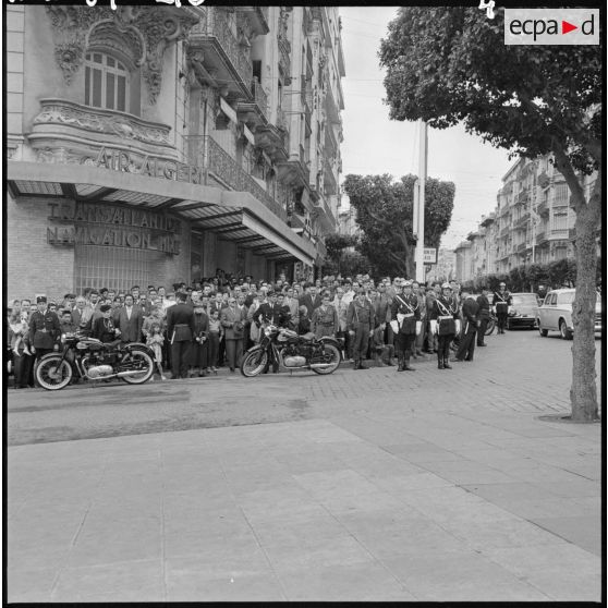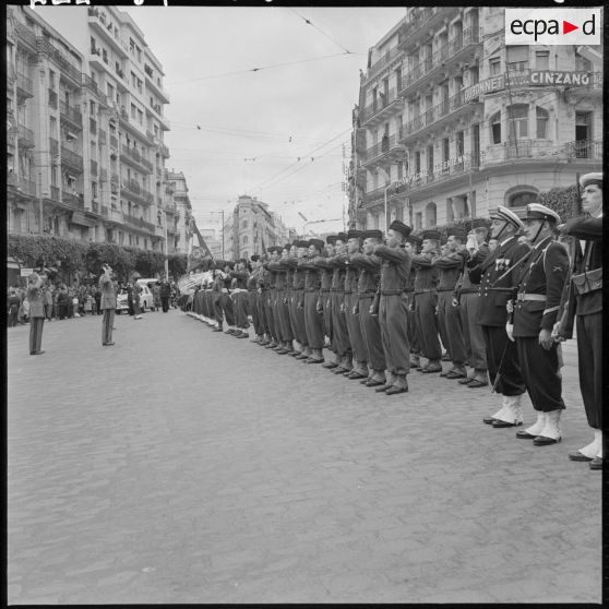Alger. Les autorités devant le drapeau du 19e Génie.