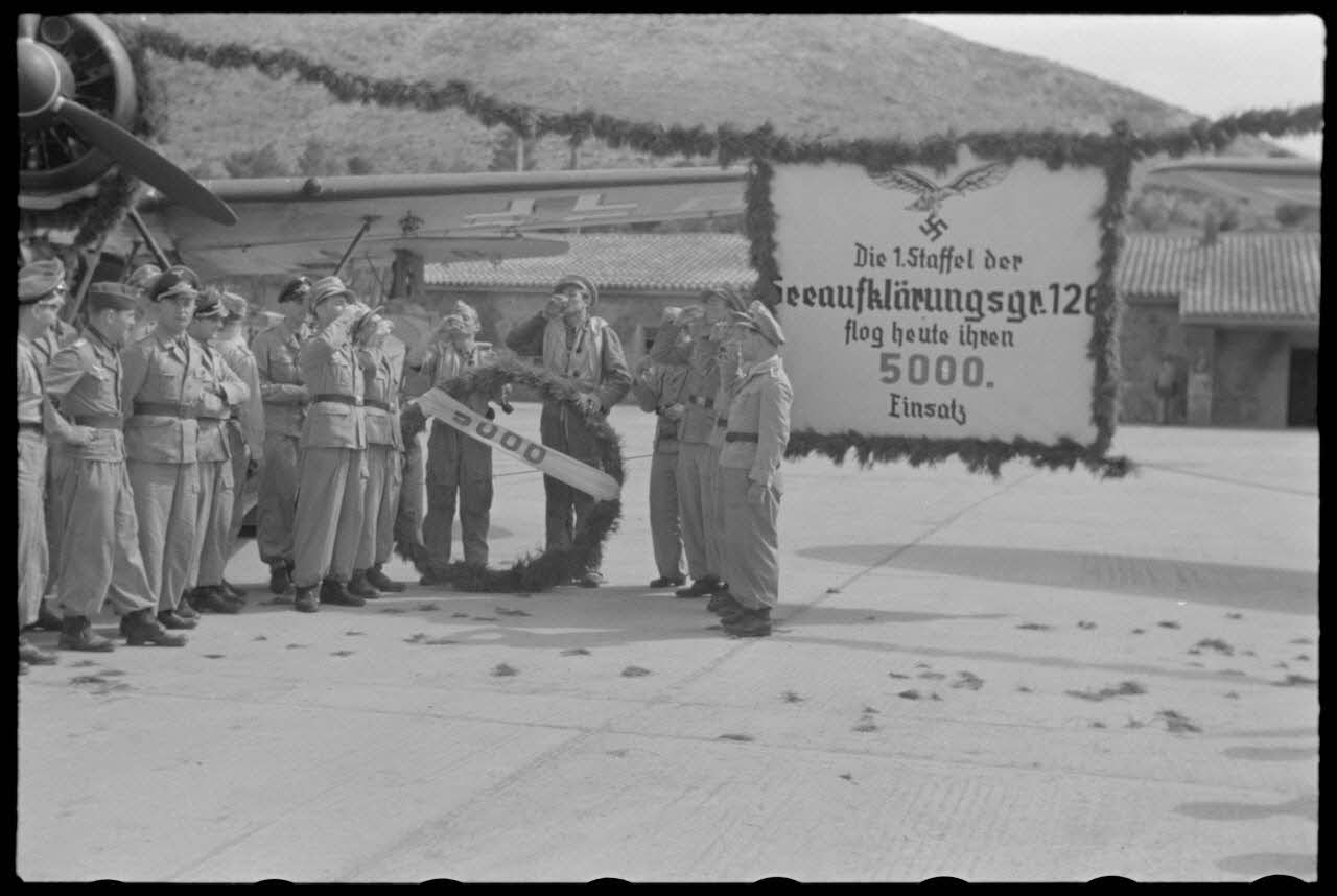 Vue aérienne et célébration de la 5000e mission du 126e groupe de reconnaissance (Seeaufklärungsgruppe 126).