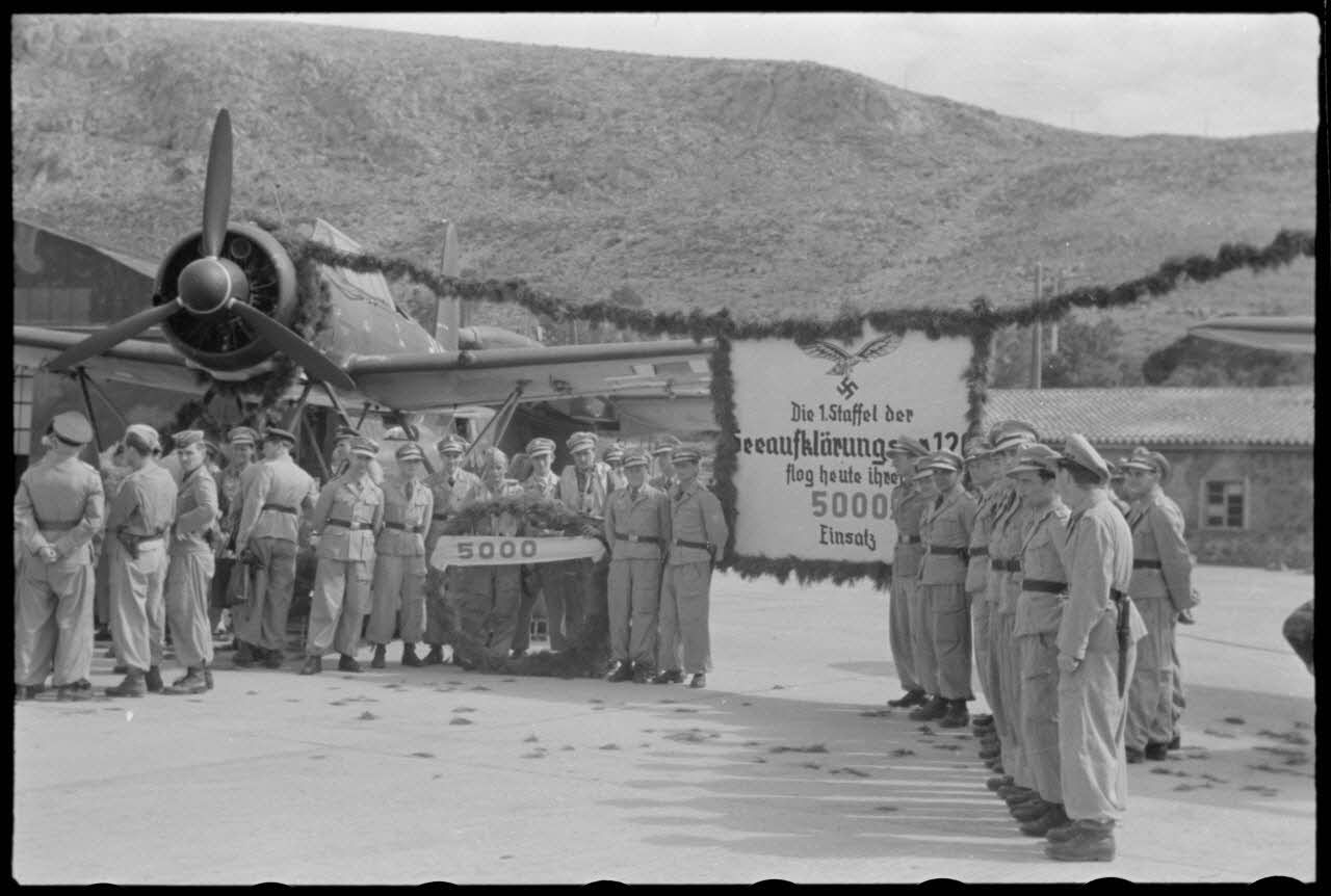 Vue aérienne et célébration de la 5000e mission du 126e groupe de reconnaissance (Seeaufklärungsgruppe 126).
