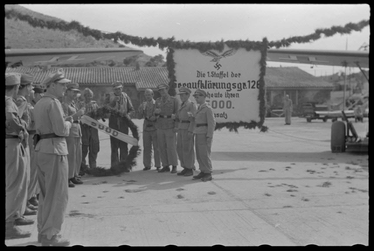 Vue aérienne et célébration de la 5000e mission du 126e groupe de reconnaissance (Seeaufklärungsgruppe 126).