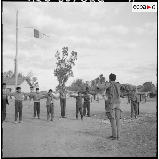 Centre de regroupement de population de Tafaraoui. Des enfants font du sport.