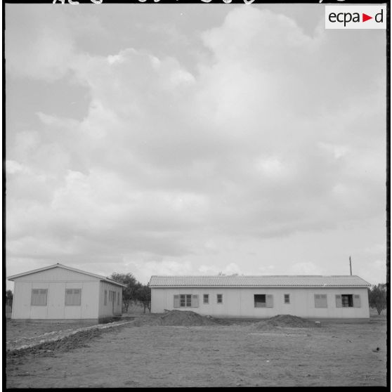 Centre de regroupement de population de Tafaraoui. Des ouvriers construisent des maisons.