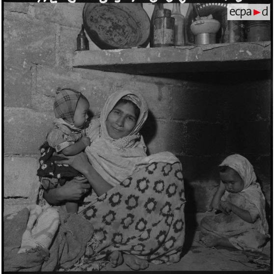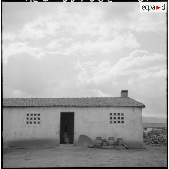 Centre de regroupement de population de Tafaraoui. Une famille dans sa maison.