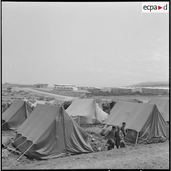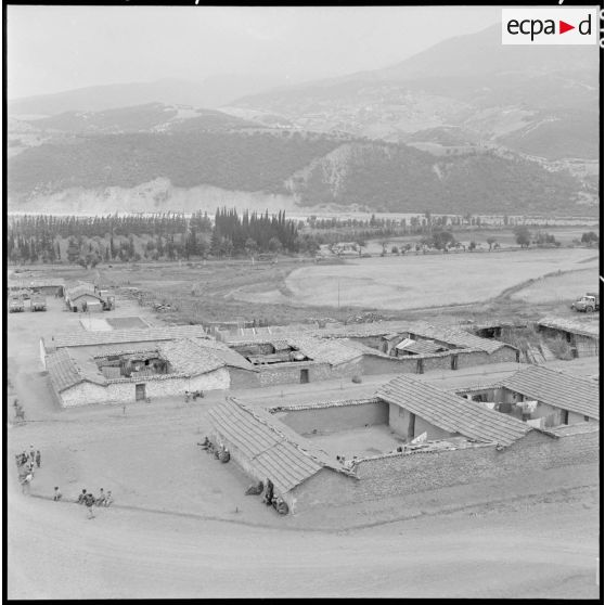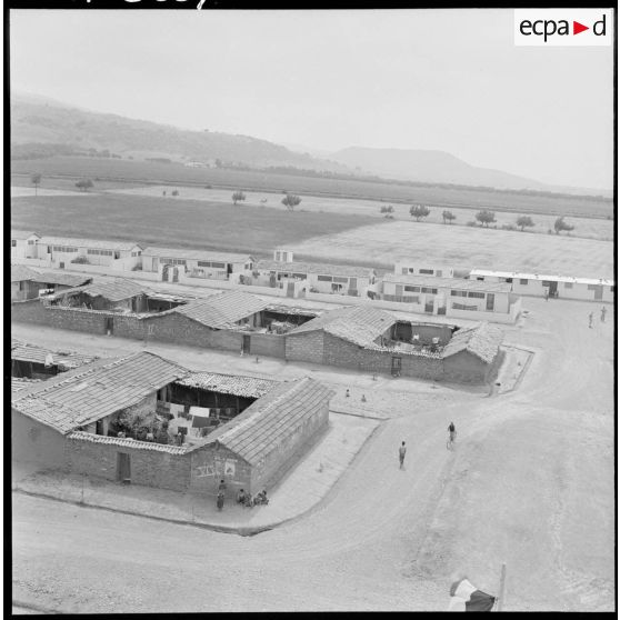 Le centre de regroupement de Cheria, à 20 kilomètres à l'est de Blida, n'est pas complètement terminé. La population étant de 600 habitants : 250 personnes couchent dans les habitations en dur et 350 personnes dans des tentes. La population prépare le terrain et les canalisations qui amèneront l'eau courante dans les futurs logis. A l'entrée du village se trouve une école avec un instituteur et une institutrice civils.