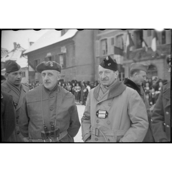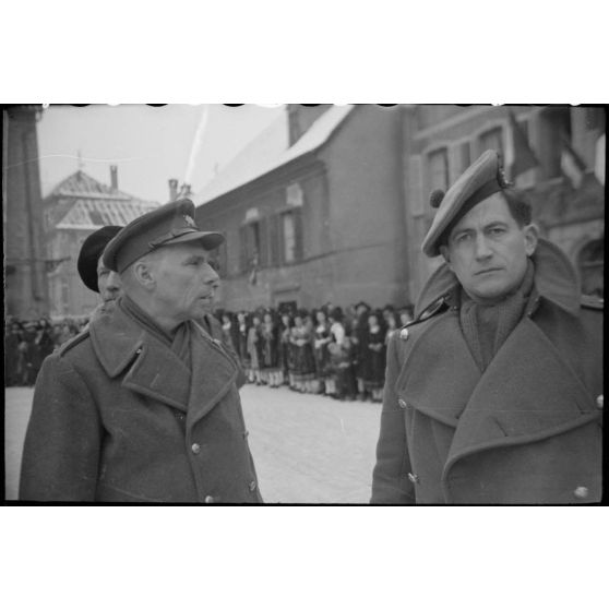 Le 14 janvier 1945, une délégation d'attachés militaires étrangers, en visite sur le front d'Alsace, participe à une cérémonie militaire à Masevaux en présence du général de division Marcel Carpentier, commandant la 2e DIM.