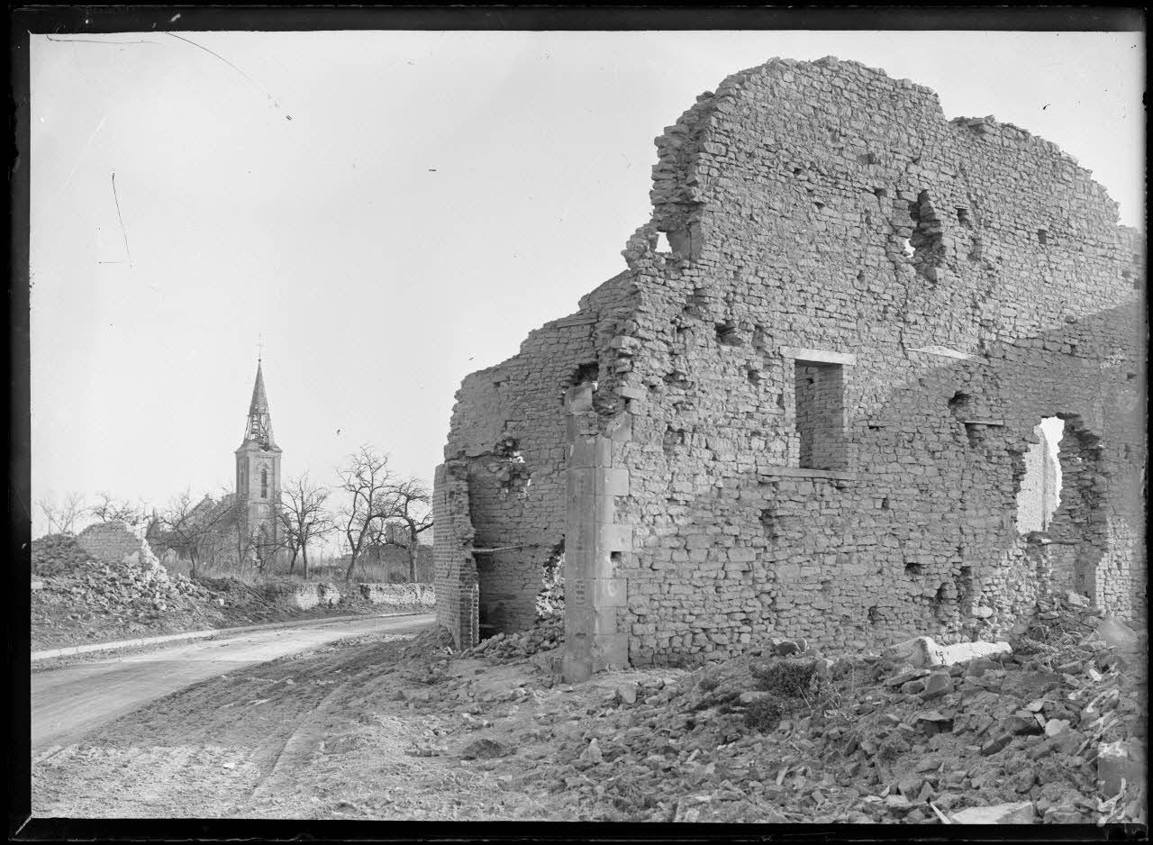 Ruines sur la ligne Metz à Sedan, novembre 1918.
